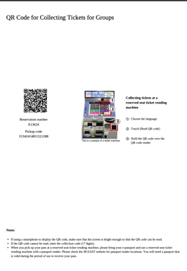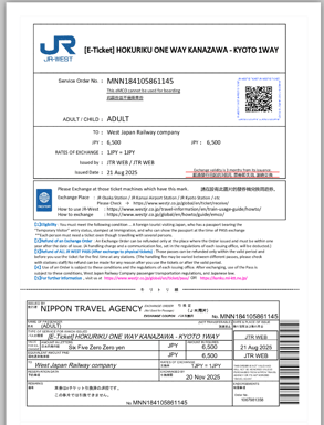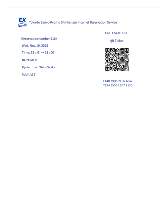 - Voucher Shinkansen JR avec QR code et sièges attribués :